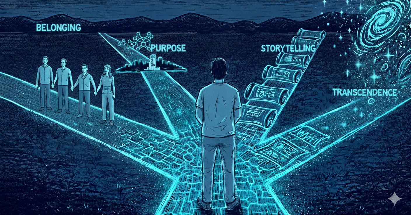 Researchers studying resilience, for example, highlight the importance of close relationships (belonging), purpose beyond the self, coherent life narratives, and experiences of awe or spirituality. Ancient traditions echo the same themes. And in everyday language, we often say things like “I just want to feel part of something,” “I need to know this matters,” “I’m trying to make sense of it,” or “That moment took my breath away.”